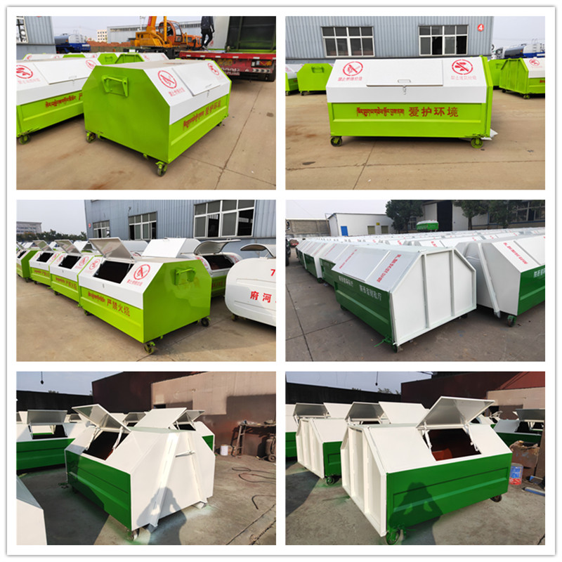 勾臂垃圾車配套移動垃圾箱外形以上梯形下長方形、上弧形下長方形、上弧形下弧形、長方形為主,箱體兩邊各帶一對或二對垃圾投入口或頂部開口,帶蓋式箱體能夠避免風(fēng)將輕質(zhì)垃圾(塑料袋,廢紙等)吹散和防止雨水進(jìn)入箱內(nèi);箱體底部帶一對鐵輪方便吊上卸下時垃圾箱的移動,箱體后部可開啟【帶鎖緊機(jī)構(gòu),配備密封條】。勾臂垃圾箱外觀形狀、大小容積可根據(jù)用戶需求定制加工。