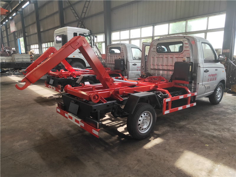 勾臂垃圾車【車廂可卸式垃圾車】車體和垃圾箱可完全分離,由液壓系統(tǒng)來完成收箱/放箱,在平日里可將車載垃圾箱放置到各個垃圾收集點,待垃圾收集滿后,該車可直接開赴收集點,通過液壓系統(tǒng)的操控,可將垃圾車后座上加裝的勾臂放下,掛住站內(nèi)箱體前端的連接點,將垃圾箱拉**車體的后座上,此時即可開動車輛,將垃圾運送垃圾處理站內(nèi),進(jìn)行自卸式傾倒,優(yōu)點就是可一車配多斗,一輛車就可以維持?jǐn)?shù)個垃圾收集站的運轉(zhuǎn),效率高,且箱體為密封式設(shè)計,不會造成二次污染。