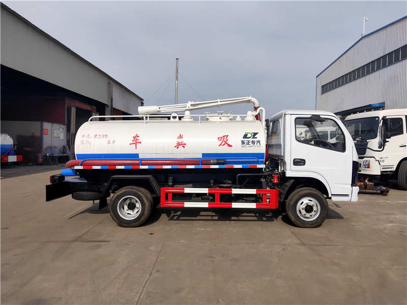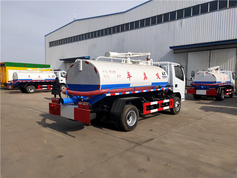 吸糞車專用部分由取力器、傳動軸、真空吸污泵、油水分離器、水氣分離器、防溢閥、壓力罐體、液壓部分,管網(wǎng)系統(tǒng)、吸污導(dǎo)管、自流閥、真空壓力表、視糞窗、洗手裝置等組成。罐體采用Q235碳鋼板制作,罐體封頭一次壓鑄成型,吸污導(dǎo)管可自吸自排,隨車配置大功率真空吸污泵。
