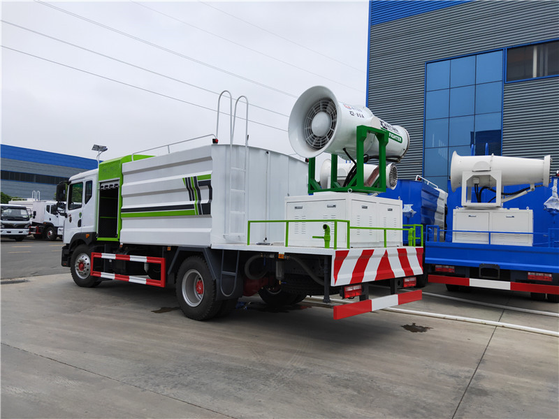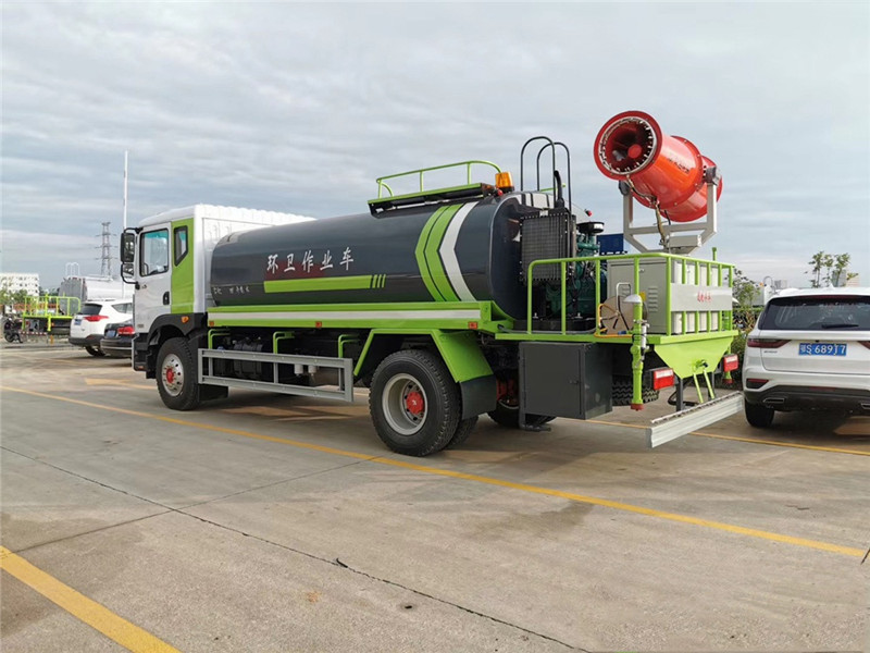 灑水車工作主要由發(fā)動(dòng)機(jī)帶動(dòng)變速箱,變速箱上安裝的取力器帶動(dòng)灑水車水泵產(chǎn)生動(dòng)力,將罐體內(nèi)部的水通過(guò)管路噴灑出去,水泵可自吸自排。可根據(jù)用戶需求選配抑塵霧炮。